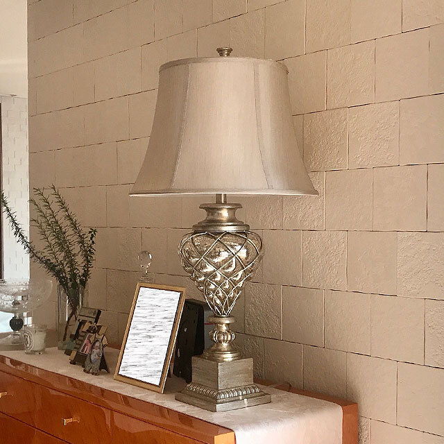 BARNES and IVY(バーンズ&アイビー)の「コンキッリア1灯テーブルランプ(オールドシルバー)」 は、美しさと機能性を兼ね備えた輸入インテリア照明です。キャストレジンとマーキュリーガラスを組み合わせた上質な本体に、クロスデザインの布製シェードを採用し、クラシカルで気品ある雰囲気を演出します。 ナイトライト機能を含む4段階切替に対応しており、読書やリラックスタイムなどシーンに合わせた照明演出が可能です。オールドシルバーのフィニッシュがレトロかつエレガントな輝きを放ち、リビング、ベッドサイド、書斎など幅広い空間に調和します。 おしゃれな卓上照明として、輸入住宅やクラシカルなインテリアコーディネートに最適なテーブルランプです。