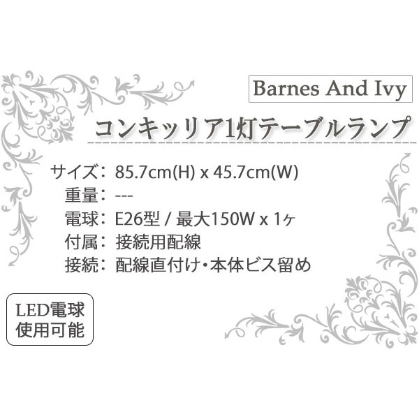| 製品名: | コンキッリア1灯テーブルランプ・テーブルスタンド(卓上照明) |