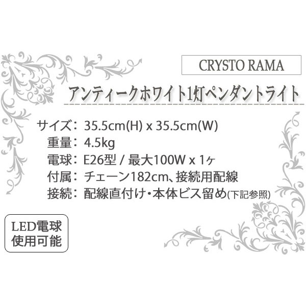 | 製品名: | アンティークホワイト1灯ペンダントライト |