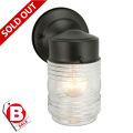 本体素材: スチールメタル|フィニッシュ: ブラック|シェード: クリアーガラス|重量: 0.4kg|取付台座: 11.5cm|取付台座から本体: 5cm|ガラス設置サイズ: 10.5cm(H) x 9cm(W)|口金: E26型|電力: 最大60W x 1|LED電球: 使用可能|本体固定: ビス止め|配線接続: 直接配線 [アメリカの照明器具は変圧器など使用せず日本国内でそのまま使用いただけます]