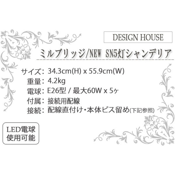 | 製品名: | ミルブリッジ NEW SN5灯シャンデリア/ダウン型 |