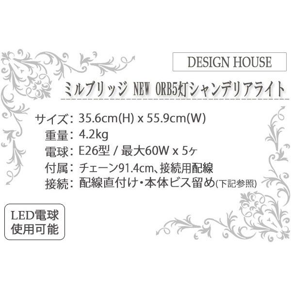 | 製品名: | ミルブリッジ NEW ORB5灯シャンデリア/ダウン型 |