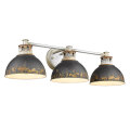 GOLDEN LIGHTING(ゴールデンライティング)が手掛ける、クラシックな雰囲気漂う3灯式の壁付けブラケット照明「キンスレイ」。アンティークブラックアイアンのシェードが、空間に深みと高級感を演出します。重厚感のあるアイアンフレームと、やわらかなヴィンテージ調の光が美しく調和し、洗面所・キッチン・玄関ホール・リビングなど、あらゆる屋内空間にアクセントを加えます。 上品なデザインながら、現代のインテリアにも自然に溶け込み、クラシック・モダン・インダストリアルなど、さまざまなテイストにマッチ。ホテルライクな洗面空間を演出したい方にもおすすめのアイアン製ウォールライトです。 高品質な仕上げとバランスの取れたデザインにより、実用性とインテリア性を兼ね備えた照明アイテムとして長くお使いいただけます。